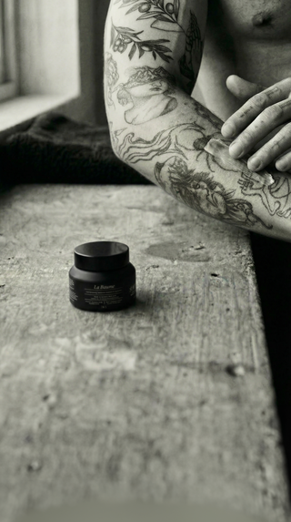 Le Baume was created to support that evolution, hydrating, protecting, and reinforcing the skin barrier so tattoos age with clarity, balance, and comfort.